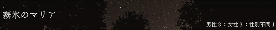 【霧氷のマリア】 (むひょうのまりあ) 男性3:女性3:男女可1。 「偶像のキャロル」続編です。 男女性別反転バージョンのサンプルは